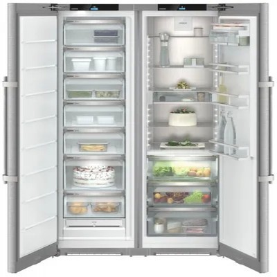 Дизайн и практичностьС моделями Side-by-Side от Liebherr Вы сможете комфортно хранить еще больше свежих и замороженных продуктов. Оптимальный выбор для большой семьи или для тех, кто не любит часто ходить в магазин!Зона свежести BioFreshВнутри контейнеров BioFresh поддерживается температура, которая близка к 0°С и высокая влажность – это оптимальные условия для хранения овощей и фруктов. В контейнере с низкой влажностью можно разместить мясо, сыры и другие молочные продукты.Сенсорный дисплейСенсорный дисплей с высоким разрешением и контрастом установлен за дверью. Он позволяет осуществлять интуитивно понятную настройку температуры и выбирать необходимые функции за несколько касаний. Динамическое охлаждениеВ системе PowerCooling используется мощный и тихий вентилятор, который обеспечивает активную циркуляцию воздуха, за счет этого внутри холодильника устанавливается равномерная температура, а угольный фильтр FreshAir попадание посторонних запахов во внутреннее пространство.Задняя стенка из нержавеющей сталиНержавеющая сталь с покрытием SmartSteel на задней стенке обеспечивает устройствам необычный и притягательный внешний вид. Такая поверхность является безопасной для еды, а еще на ней практически не остаются отпечатки пальцев.Колонны LightTowerДве LED-колонны наполняют внутреннее пространство холодильника белым светом. Во время работы они практически не выделяют тепло, потребляют мало энергии, обеспечивают оптимальный обзор и великолепный внешний вид.Контейнер для мелочейКонфигурируйте холодильник под продукты и емкости практически любого размера - для мелочей всегда найдется место. Контейнер VarioSafe оптимален для небольших продуктов и различных баночек.Комфорт в деталяхПланируете охладить чуть больше напитков, чем обычно? В устройствах с зоной свежести BioFresh для этого предусмотрена специальная полка. Для ее использования достаточно легким движением руки поднять стеклянную панель и расположить там бутылки, вскоре после этого они будут охлаждены и готовы к подаче.Контейнер SpaceBox в морозильной камереТеперь в морозильной камере можно комфортно разместить объемные продукты. С контейнером SpaceBox вы заморозите ту еду, которую нельзя расфасовать, например, целую индейку или большой торт. Контейнер с высотой 250мм позволяет легко их расположить!Ручка с толкателемНовая ручка с интегрированным механизмом толкателя позволяет открывать дверь практически без усилий. Её конструкция стала прочнее, а утонченный и элегантный дизайн будет оптимально гармонировать с различными интерьерами.Доводчики SoftSystemДоводчики SoftSystem позволяют закрывать дверь плавно и непринужденно, обеспечивая мягкость даже при резком закрытии и полной загрузке полочек. Бутылки и продукты будут находиться в спокойствии и не сдвинутся с места.Немецкое качествоПри разработке холодильного оборудования мы учитываем многолетний опыт наших инженеров и различные сценарии использования. Из-за этого наша техника получается инновационной, сбалансированной и удобной!